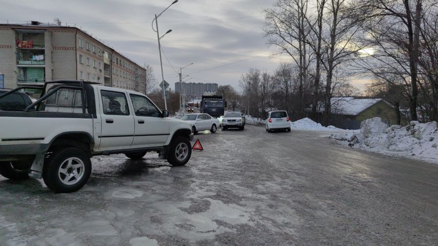 На заледеневшей Нагорной в Благовещенске произошло тройное ДТП