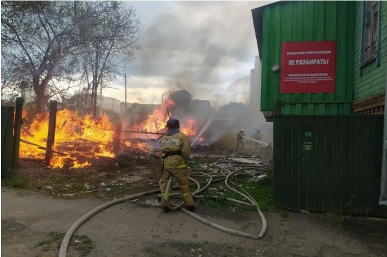 В центре Благовещенска начался пожар: горят хозпостройки близ объекта культурного наследия
