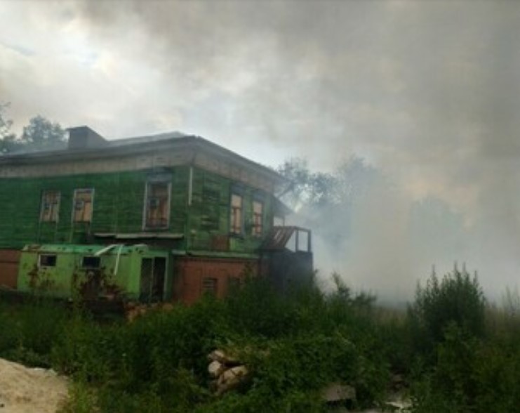 Горят хозяйственные постройки близ деревянного здания Дальгеологии, являющегося объектом культурного наследия. На место прибыли два пожарных автомобиля, «скорая» и автомобиль поисково-спасательного отряда. Здание пытаются спасти от огня, сараи практически полностью сгорели.
