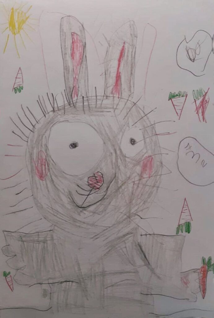 — Дочка очень ждет Новый год. В детском саду нарисовала вот такого новогоднего зайца, – подписал рисунок Василий Орлов.