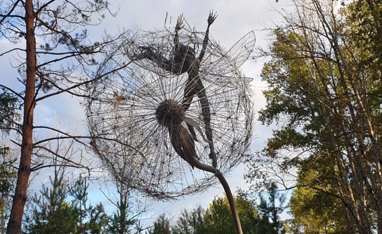 В сквере Циолковского появились новые арт-объекты. Изюминкой парковой зоны стали феи в стиле Робина Уайта, которые расположились на огромных одуванчиках и как будто парят над землёй.