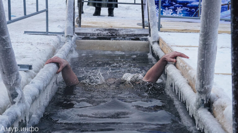 Несмотря на то, что в опросе мэра большинство голосующих благовещенцев были против организации купели, она не пустует.