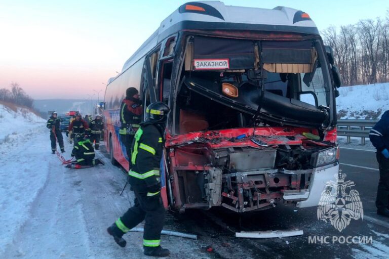 Как установили сотрудники полиции, водитель автобуса не выдержал безопасную дистанцию до впереди идущего грузовика и врезался в него. Известно, что мужчина в результате столкновения получил сотрясение головного мозга и перелом. Как сообщает Главное управление МЧС России по Приморскому краю, мужчину, спровоцировавшего автоаварию, пришлось вытаскивать из деформированной кабины с помощью гидравлического инструмента.