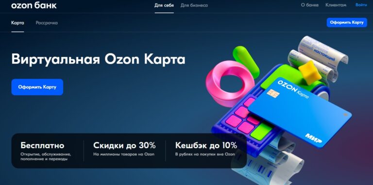 - нет комиссии за пополнение и за перевод денег с Ozon Карты, нет платы за обслуживание;