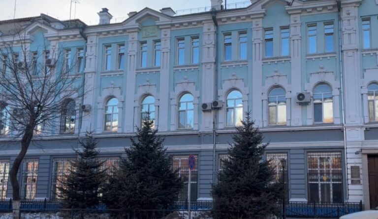 Если мы пройдём дальше по улице Пионерской, то под номером 25 увидим здание Управления Федеральной службы исполнения наказания. Трехэтажное здание имеет богатую историю: в начале 20 века это был постоялый двор Марии Тарасовой. Тогда это было двухэтажное кирпичное с подвальным помещением здание. Такое расположение оказалось крайне выгодным для владелицы, ведь рядом находился амурский базар. Кроме здания гостиницы, были и другие постройки – конюшня и мастерские. Здесь жили торговцы, которые привозили из сел свою продукцию, скот и птицу. Сами Тарасовы, Мария и Андрей, жили рядом в своем доме.