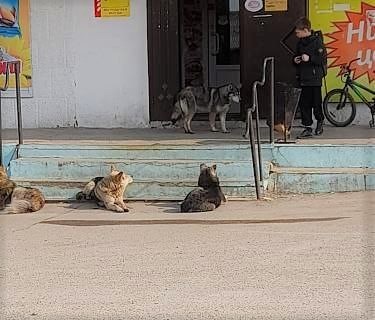 Подписчица одного из амурских телеграм-каналов, посвященных жизни в Шимановске, поделилась кадрами, на которых видно, как вход в магазин оккупировали несколько собак.