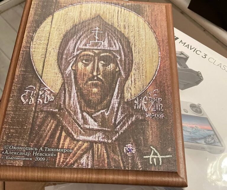 Репродукция иконы «Александр Невский», написанная благовещенским художником Александром Тихомировым, в составе гуманитарного груза дошла до российских бойцов, участвующих в спецоперации на Украине, сообщила пресс-служба министерства культуры и национальной политики Амурской области.