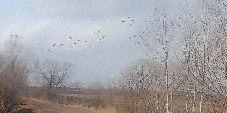 Стаю журавлей обнаружили в Константиновском районе. На кадрах видно, как в небо поднялось большое облако из птиц.