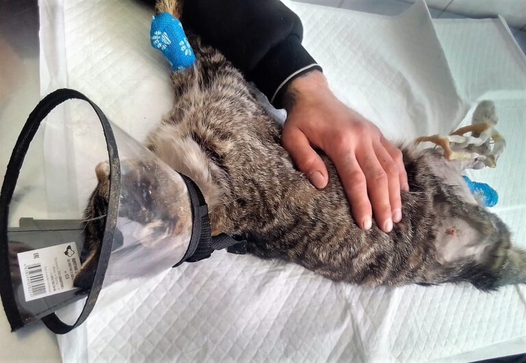 Сейчас Марс проходит необходимые после операции процедуры и восстанавливается. Дарья сообщила, что пострадавший уже хорошо ест, но общее состояние пока не более, чем удовлетворительное: есть небольшой отёк на лапе. Вторую лапку ему удалось спасти, но она будет заживать не менее месяца.