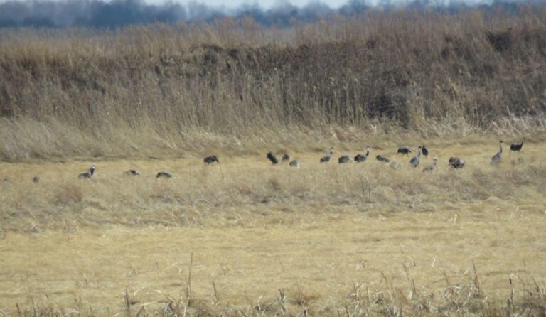 Журавли обосновались в Муравьёвском заказнике. Специалисты насчитали не меньше сотни особей двух редких видов – чёрного и даурского. В настоящее время стая продолжает расти. Сообщается, что журавли останавливаются в Муравьёвском заказнике каждый год.