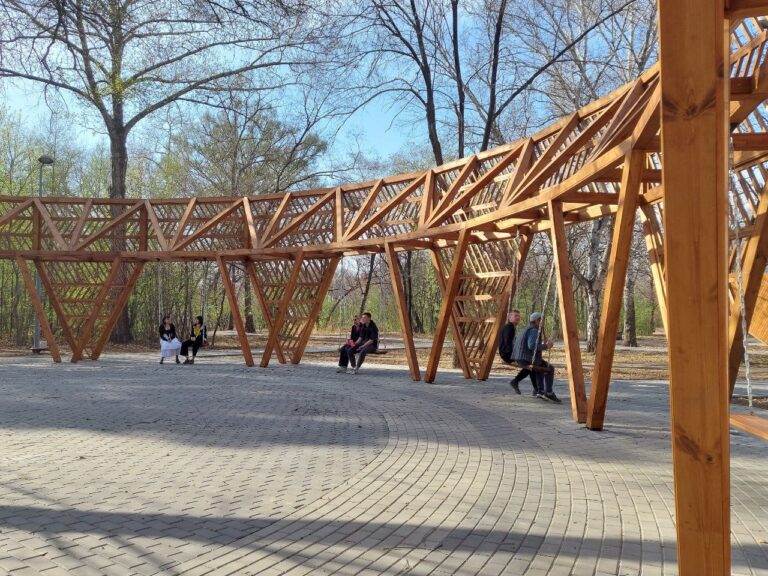 В Первомайском парке завершился второй этап реконструкции. Особенно горожанам понравились новая входная группа, пергола с качелями, амфитеатр, трибуны и сцена. До последнего момента внешний вид входа в парк портили опоры ЛЭП с электропроводами.
