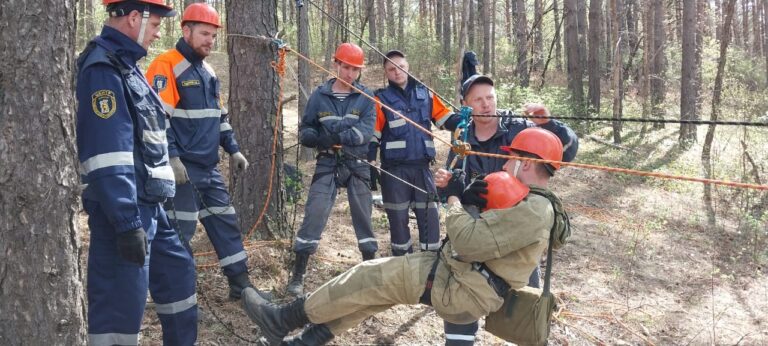 Профессионалы должны были найти мужчину, который, по легенде, заблудился в лесу и сломал ногу, перебираясь через глубокий овраг. Ему нужно было оказать первую помощь, с помощью подручных средств зафиксировать сломанную конечность и эвакуировать в безопасное место.