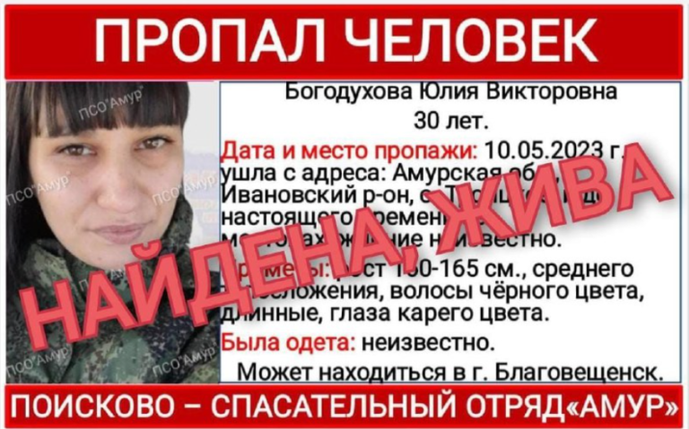 В прошлое воскресенье, 14 мая, Амур.инфо писало о том, что в Приамурье ищут пропавшую без вести жительницу села Троицкого. Хорошей новостью поделились в ПСО «Амур» – девушка нашлась.