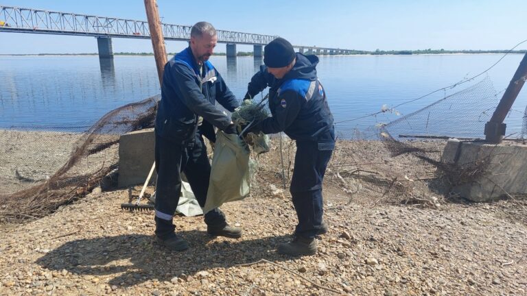 «Больше всего мусора здесь было после наводнения 2013 года. Мы очищаем береговую линию каждый год. Это наш вклад в сохранение природы и залог стабильной работы важнейшего объекта – береговой насосной станции», – отмечает начальник турбинного цеха Дмитрий Романов.
