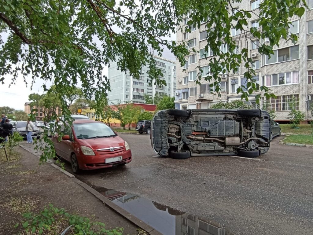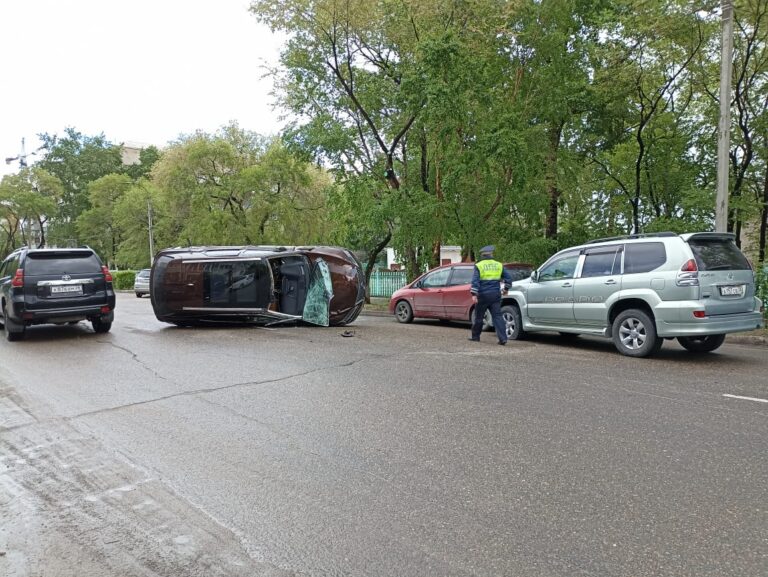 В среду, 31 мая, в Благовещенске на улице Артиллерийской на участке между Красноармейской и Горького произошло ДТП с участием трёх автомобилей, один из которых перевернулся, сообщает паблик autoroad.blg