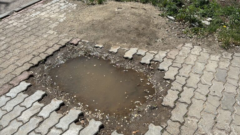 Год назад всё это засыпали грунтом, с тех пор ничего не происходит. Асфальтовое покрытие не восстанавливается, вынутая тротуарная плитка так и не заняла своё штатное место.