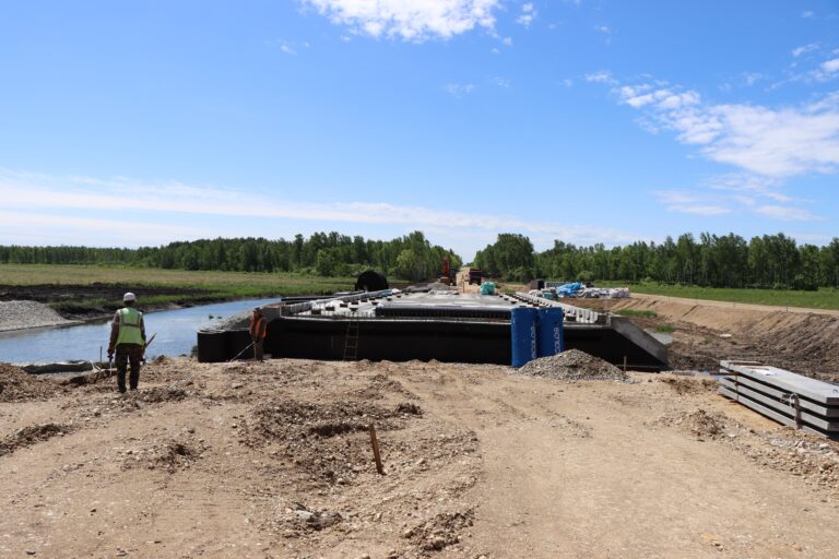 На данном этапе рабочие занимаются устройством локальных очистных сооружений, а вскоре приступят к завершению работ по подходной насыпи, укладке бетона и обустройству дороги необходимыми элементами.