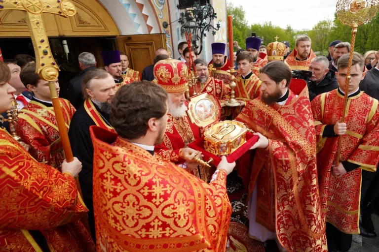 Частица мощей Георгия Победоносца совершает путь по стране в рамках акции «Всероссийский молебен о победе». 6 мая, перед отправкой святыни и в преддверии 78-й годовщины Победы в Великой Отечественной войне, Святейший Патриарх Московский и всея Руси Кирилл возглавил церемонию передачи ковчега участникам Всероссийского крестного хода в московском Георгиевском храме на Поклонной горе.