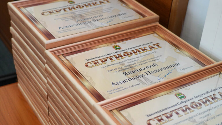 В преддверии Дня молодежи 47 студентам высших и средних профессиональных образовательных организаций из Благовещенска, Райчихинска, Зеи, Свободного и Тынды вручили сертификаты на получение стипендии имени Николая Муравьева-Амурского. Ещё восьмерым получателям, кто не смог принять участие в мероприятии лично, документы передадут позже. Об этом сообщили в Заксобрании Амурской области.