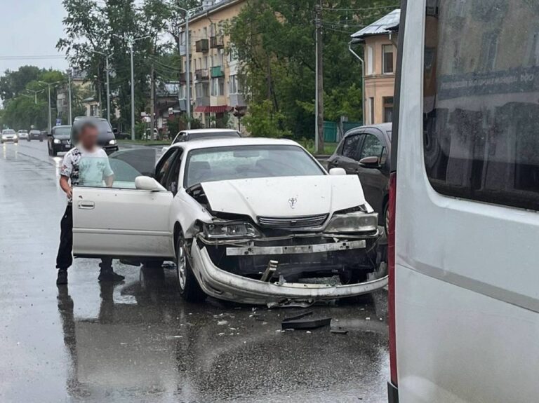 ДТП произошло 29 июня на улице Ленина возле расчётно-кассового центра. По словам очевидцев, водитель автомобиля Toyota Mark II совершил столкновение с пассажирским автобусом. На кадрах видно, что иномарка получила механические повреждения. Можно предположить, что автомобиль въехал в автобус сзади.