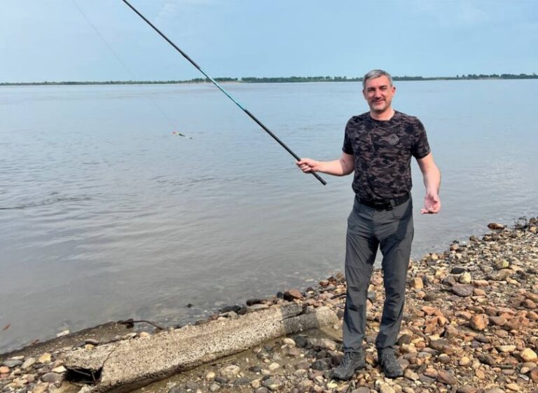 В своём телеграм-канале глава региона опубликовал пару фото с берега реки. И даже улов. Правда рыбка легко уместилась на ладони…