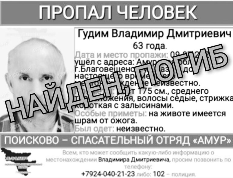 На прошлой неделе Амур.инфо писало о том, что волонтеры ищут пропавшего 9 июля 63-летнего мужчину.