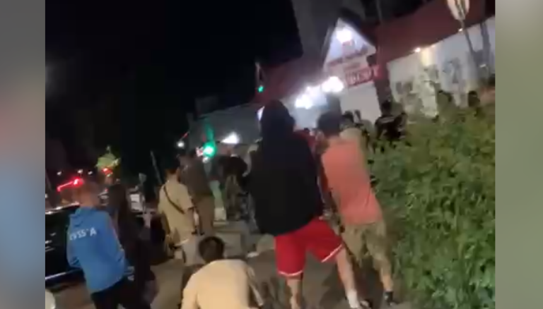 Как рассказал очевидец случившегося, потасовка произошла около 3:20 утра. Проезжая часть практически полностью была перекрыта людьми.