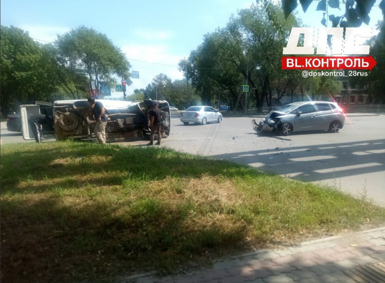 Судя по фото, опубликованным в телеграм-канале «dpskontrol_28rus», обе машины получили значительные механические повреждения. Одна из них перевернулась, на боку, который оказался сверху, отчетливо видна вмятина от врезавшегося автомобиля. У второй иномарки серебристого цвета смята вся передняя часть машины.