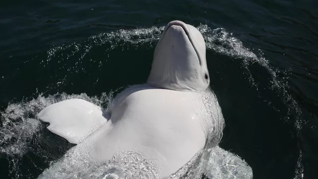 К слову, белуха относится к отряду китообразных и принадлежит к семейству нарваловых. Самцы по размеру немного больше самок. Они достигают длины тела в шесть метров и массы примерно в две тысячи килограммов. При появлении на свет детеныши имеют темно-синюю окраску, которая по мере роста становится бледнее, переходя в голубой цвет. Когда белуха достигает возраста пяти лет, то она становится абсолютно белой.