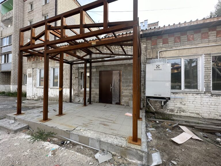 По словам руководителя подрядной организации Артема Савченко, сотрудники уже выполнили устройство коммуникаций, сейчас ведется подготовка под заливку отмостки, устройство облицовки фасада, входных групп. В конце недели рабочие приступят к установке сантехники, финишному окрашиванию стеновых панелей.