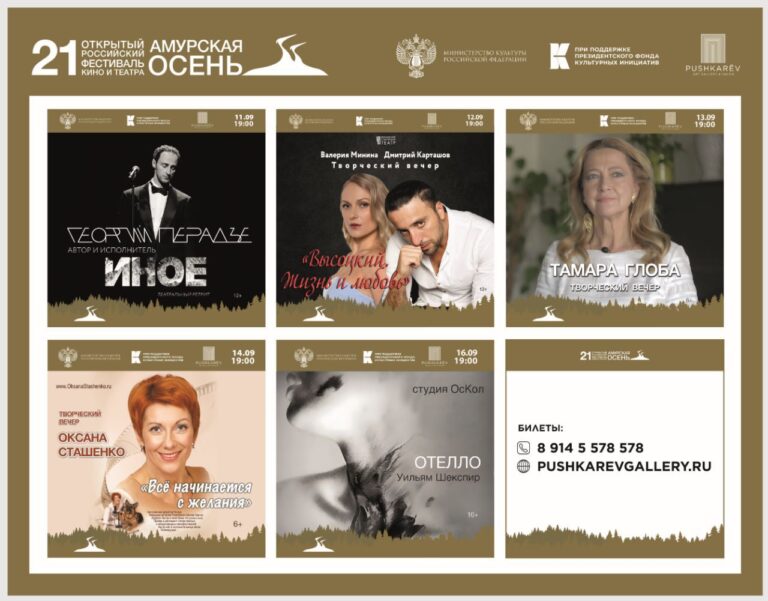 «Амурская осень» на сцене Галереи PUSHKARЁV готовит для зрителя отдельную творческую программу с участием известных актёров и гостей фестиваля.