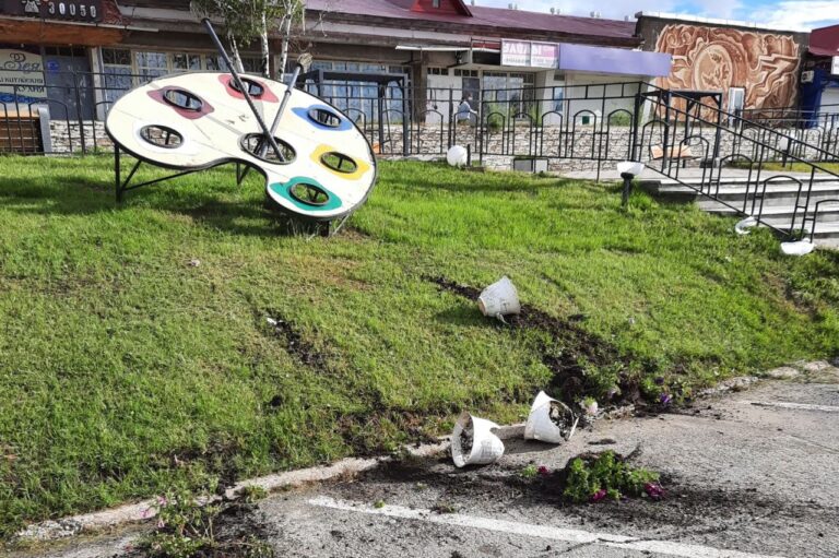 Горожанка раскидала вазоны с цветами, опрокинула саму клумбу в виде палитры, а также побила наземные уличные плафоны. «Представление», по словам свидетелей, длилось недолго, зато последствия имеет внушительные. Кроме того, чуть не пострадали и сами таксисты – женщина пыталась кидать в них горшки с цветами, а что стало причиной – неизвестно.