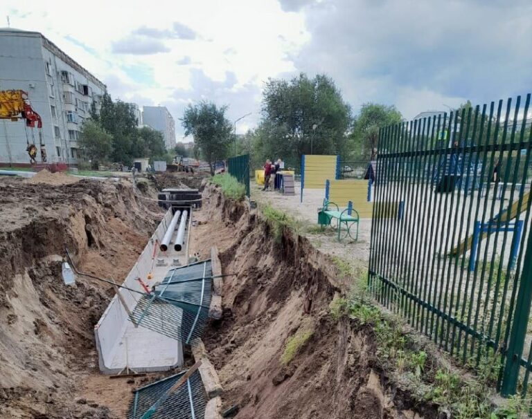 Как объяснил подрядчик, по проекту трасса должна была располагаться ближе к домам, а на деле вышло, что она находится ближе к площадке для выгула собак. Территорию после работ на теплотрассе полностью восстановят.