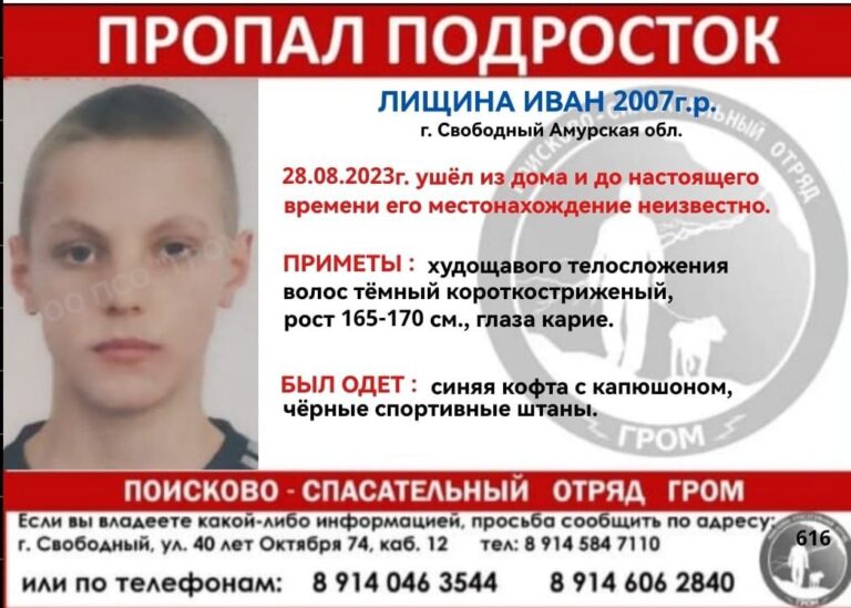 В Свободном пропал 16-летний Иван Лещина, сообщили в поисково-спасательном отряде «ГРОМ».