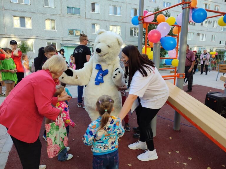 На территории двора установили игровое и спортивное оборудование. Эта дворовая зона стала уже третьей благоустроенной территорией в Прогрессе. Первые два двора обновили в прошлом году.