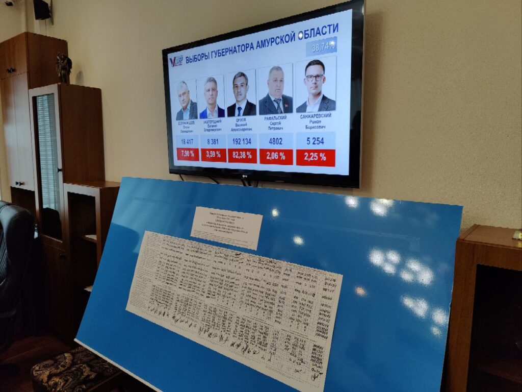 Явка на выборах, которые проходили с 8 по 10 сентября, составила 38,74 %. Действующий губернатор Приамурья Василий Орлов набрал больше всех голосов – 192 134 амурчан (82,38 %).