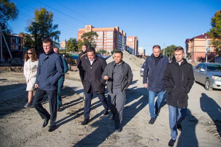 Олег Имамеев провел выездное совещание на улице Горького, где сейчас проходит ремонт дорожного полотна. На месте глава Благовещенска и специалисты определили финальные даты работ.