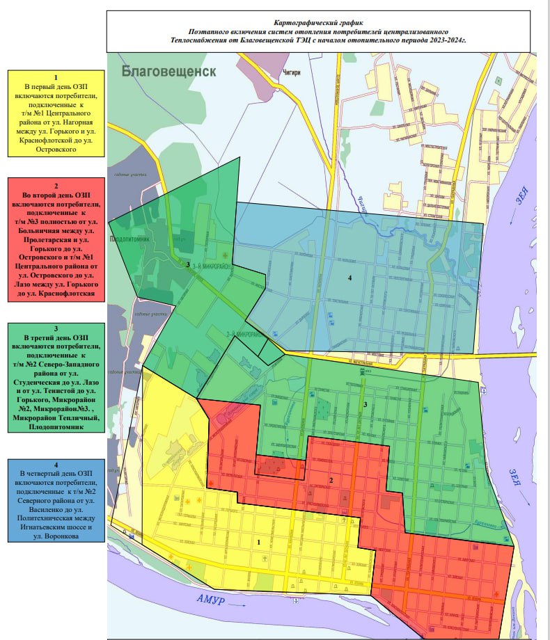 В третий день включат потребителей северо-западного района от Студенческой до Лазо и от Тенистой до Горького, микрорайоны № 2 и № 3, микрорайон «Тепличный», Плодопитомник.
