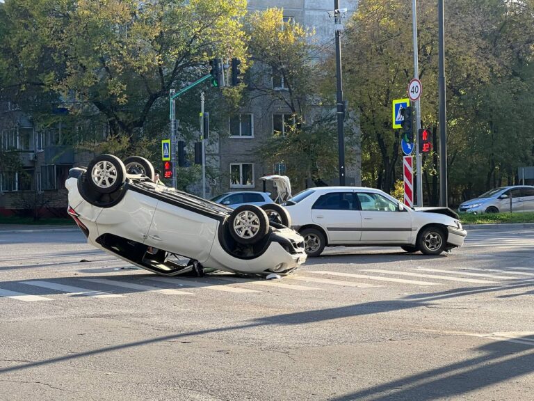 В Благовещенске в жёстком ДТП автомобиль перевернулся на крышу