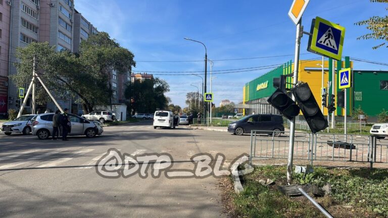 Один перекрёсток, два ДТП и минус два светофора: в Благовещенске произошла жёсткая авария