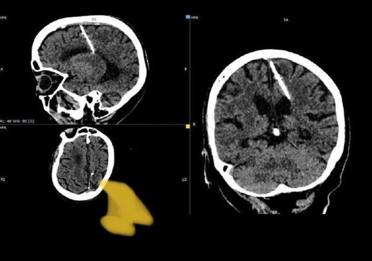 Девочке повезло – игла проникла в левую теменную долю мозга, но она выжила. При этом головные боли пациентку никогда не беспокоили. Иглу обнаружили только в этом году при проведении компьютерной томографии.
