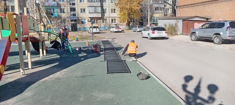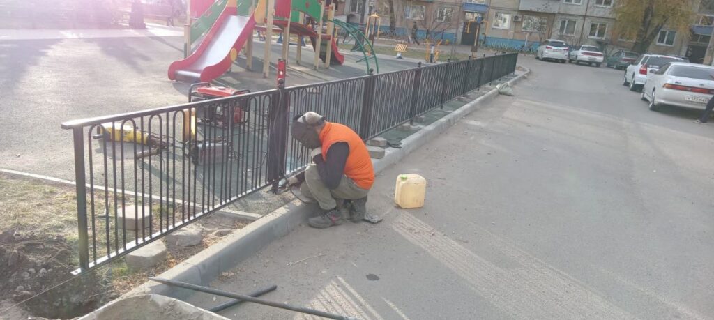 Специалисты ГСТК ставят ограждение в сквере Кузнецова, рассказали в администрации Благовещенска.