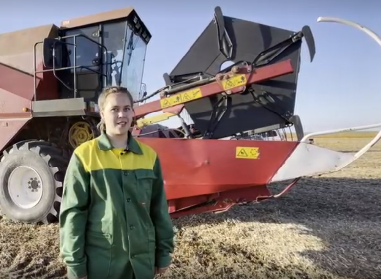 Алиса Жарикова – студентка Амурского казачьего колледжа, учится на мастера сельскохозяйственного производства третий год. Сейчас проходит практику – за рулем комбайна собирает урожай сои.