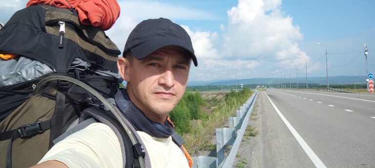 — Выпал года три назад мой отпуск на середину июня. Твои все 36 дней – что хочешь, то и делай. Решил попробовать путешествие автостопом, у всех на Ютубе вроде получается, а тем более у меня внушительный туристический опыт за плечами, в том числе по выживанию и нахождению в дикой природе. Снаряжение у меня тоже всё есть. Решаю отправиться на Байкал, так как там рядом все главные достопримечательности края: и пик Черского, и Аршан, и Листвянка, и Кругобайкальская железная дорога. И я буквально за день собираю рюкзак, утром выхожу на федеральную трассу, голосую. Пять минут мне стоило постоять, и всё, я уже в дороге. К концу дня я уже был за 1200 километров от дома! Я в тот день доехал до города Чернышевска, он в Забайкальском крае. Там в кафе с дальнобойщиком познакомился, он предложил мне переночевать в его машине, всё комфортнее, чем в палатке. Вообще, дальнобойщики – это одни из самых доброжелательных людей.