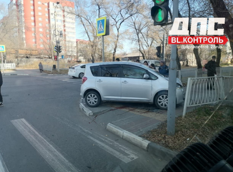 Иномарка на тротуаре: в жёстком ДТП в Благовещенске пострадали люди (обновлено)