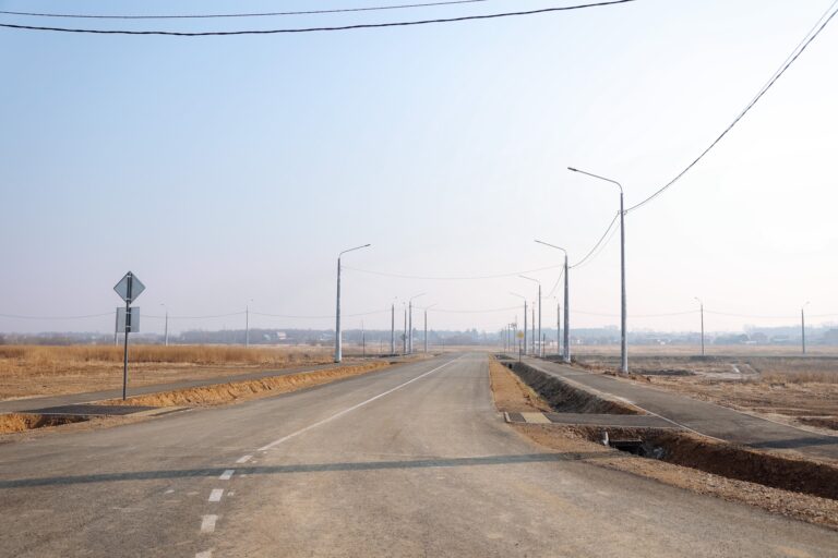 А вот работы по строительству дорожной инфраструктуры подрядчик завершил досрочно. Специалисты сделали водоотводный канал, ливневую канализацию, уложили асфальт и на дрогах, и на тротуарах, установили освещение, леерные ограждения и дорожные знаки, а также нанесли разметку. Общий бюджет на строительство дорожной инфраструктуры составил 153,6 миллиона рублей. Деньги выделили из федерального, областного и местного бюджетов.