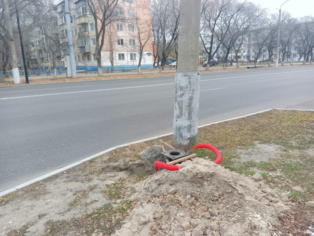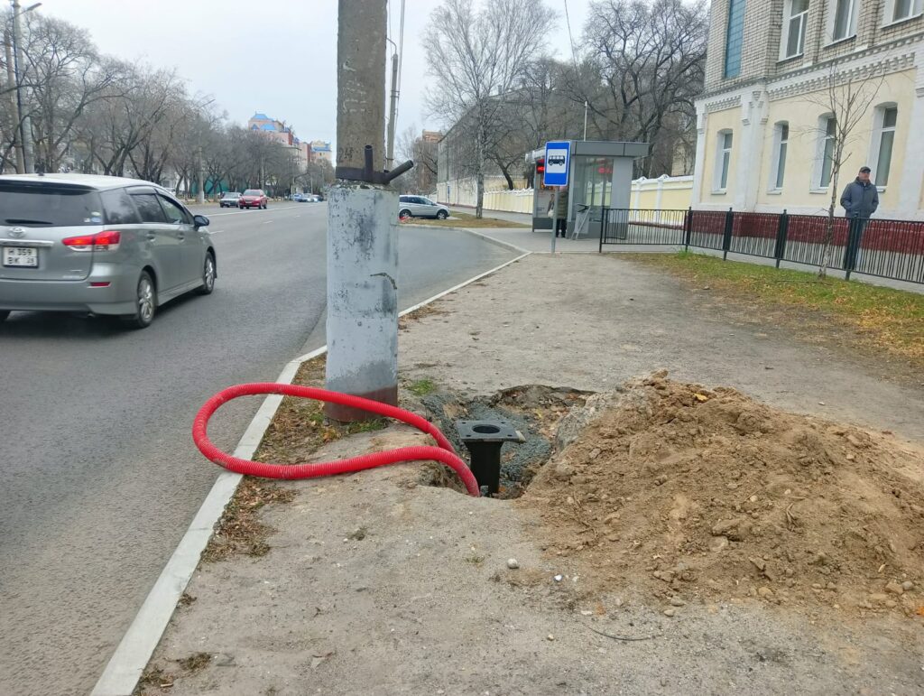 — Я живу напротив ДВОКУ и ежедневно наблюдаю красные трубы, торчащие из земли. Если летом они ещё прятались в траве, то сейчас постоянно мозолят глаза. Ремонт улицы Ленина окончили несколько месяцев назад, а эти трубы так и торчат. Когда их уберут под землю? Или всё так и останется до весны?