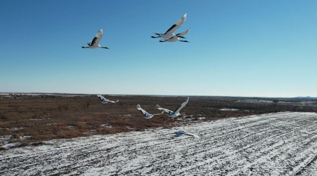— Скорость их полета составляла от 85 до 130 километров в час, чему способствовал попутный ветер. Для журавлей это значительная скорость, особенно для молодого Алима. Переночевав, 7 ноября в 10:00 они продолжили полет в прежнем направлении, но уже не так быстро. Во второй день они пролетели 140 километров со скоростью от 30 до 53 километров в час и примерно в 14:00 приземлились на втором остановочном пункте, на этот раз уже в провинции Цзилинь. Здесь они отдыхают второй день, восстанавливают силы. Лететь еще столько же, – рассказал Антон Сасин.