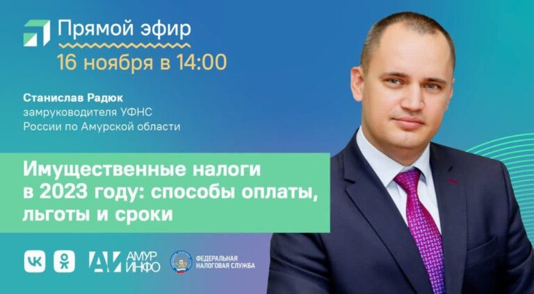 16 ноября в 14:00 состоится прямой эфир на площадке ЦУР с заместителем руководителя амурского Управления Федеральной налоговой службы РФ Станиславом Радюком. Эфир будет посвящен имущественным налогам в 2023 году: способам оплаты, льготам и срокам. Об этом рассказали в региональном министерстве имущественных отношений.