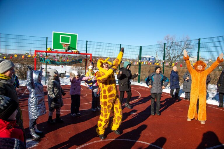 Теперь на площадке есть качели, балансир и веревочный город с горками. Рядом расположили спортплощадку с полем для футбола и баскетбола.